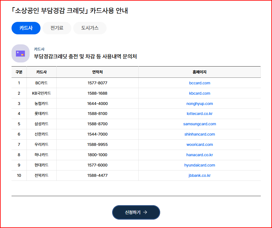 – 부담경감 크레딧 콜센터 운영 중이며, 신청 사이트에서 전화번호 확인 가능해요.